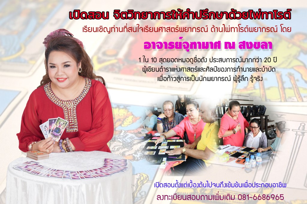 คอร์สอบรม “จิตวิทยาการให้คำปรึกษาด้วยไพ่ทาโรต์” โดยอาจารย์จุฑามาศ ณ สงขลา ด้วยหลักสูตรที่ดีที่สุด ซึ่งจะสอนให้คุณ อ่านไพ่ทำนายชีวิตได้อย่างแม่นยำ และเป็นผู้ให้คำปรึกษาที่ดีแก่ปัญหาชีวิตผู้อื่นอย่างเชี่ยวชาญ