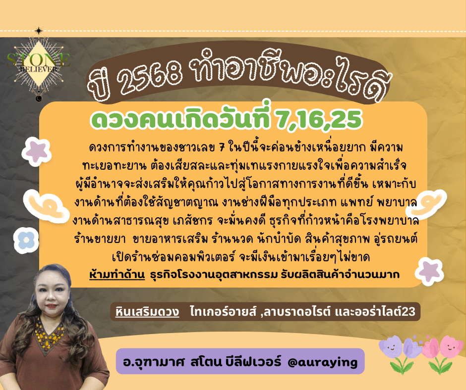 ดวงคนเกิดวันที่ 7 , 16 , 25