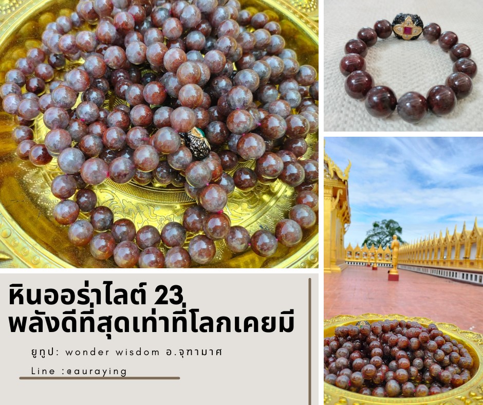 - ถ้าอยากได้หินใส่เส้นเดียวแล้วจบ เสริมสิริมงคลได้ครบทุกอย่าง ขอแนะนำเส้นนี้เลยค่ะ หินออร่าไลท์ 23 มีไหมทองเป็นยอดมงกุฎ สวยงามมาก และพลังดีที่สุดในปฐพีเลยค่ะ